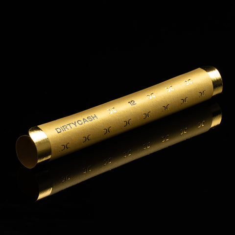DirthyCash is designed with ultimate portability in mind. The entire product packaging is approximately the size of a credit card and only slightly thicker. This makes it incredibly compact and ensures it fits easily into any wallet, right alongside your credit cards, for ultimate convenience and discretion. Each rolled strip then resembles a simple, elegant €100 banknote in size and feel.