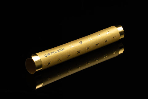 DirthyCash is designed with ultimate portability in mind. The entire product packaging is approximately the size of a credit card and only slightly thicker. This makes it incredibly compact and ensures it fits easily into any wallet, right alongside your credit cards, for ultimate convenience and discretion. Each rolled strip then resembles a simple, elegant €100 banknote in size and feel.